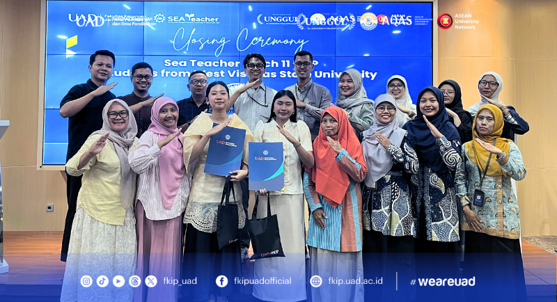 FKIP UAD menggelar Closing Ceremony SEA Teacher Batch 11 pada Kamis (23/04) di Educator Hall Kampus 4 UAD bersama mahasiswa West Visaya State University, Filipina. Mahasiswa tersebut telah melaksanakan praktik mengajar di SD Muhammadiyah Kleco 1 serta KB dan TK ‘Aisyiyah Nyai Ahmad Dahlan sebagai sekolah mitra.