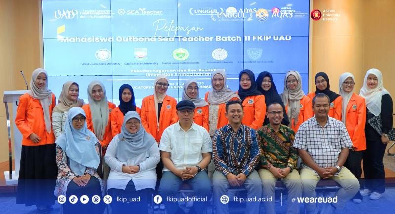 Fakultas Keguruan dan Ilmu Pendidikan (FKIP) Universitas Ahmad Dahlan (UAD) melepas mahasiswa outbound SEA Teacher (Southeast Asian Teacher Project) Batch 11 Tahun 2025/2026 pada Kamis (08/02). Kegiatan ini dilaksanakan di Educator Hall, Kampus 4 UAD serta dihadiri oleh pimpinan fakultas, dosen, orang tua/ wali, serta mahasiswa peserta.