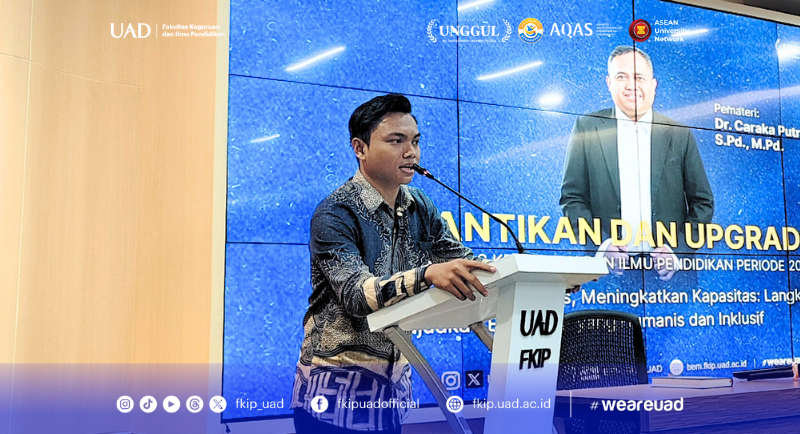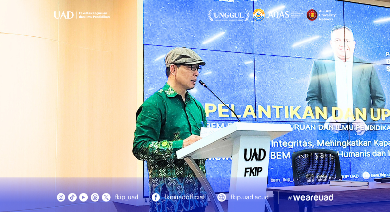 Fakultas Keguruan dan Ilmu Pendidikan (FKIP) UAD menggelar acara Pelantikan dan Pembekalan Badan Eksekutif Mahasiswa (BEM FKIP ) Periode 2025/2026 di Educator Hall FKIP, Kampus 4 UAD pada Sabtu (16/8). Pengurus BEM baru dan tamu undangan dari organisasi mahasiswa FKIP mengikuti acara ini dari pukul 08.00 hingga 12.00 WIB dengan khidmat.