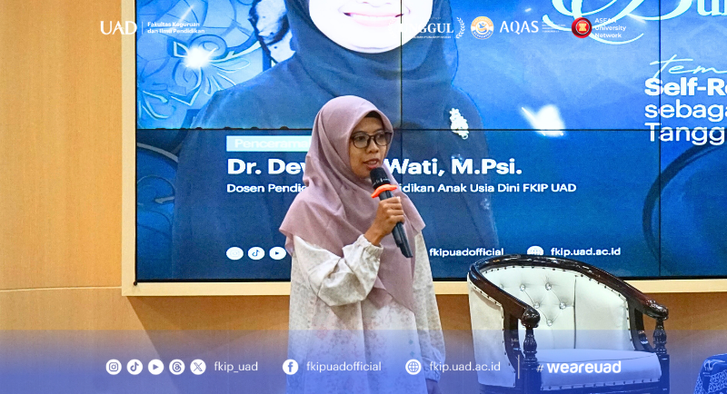 Fakultas Keguruan dan Ilmu Pendidikan (FKIP) Universitas Ahmad Dahlan (UAD) menyelenggarakan Pengajian Bulanan Mahasiswa #7 pada Rabu (14/01) di Educator Hall Kampus 4 UAD. Kegiatan ini mengangkat tema Self-Regulation Skill: Sebagai Modal Mental Mahasiswa Tangguh dengan menghadirkan Dr. Dewi Eko Wati, M.Psi., dosen PGPAUD FKIP UAD, sebagai narasumber.