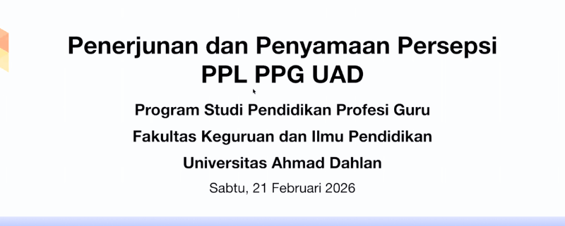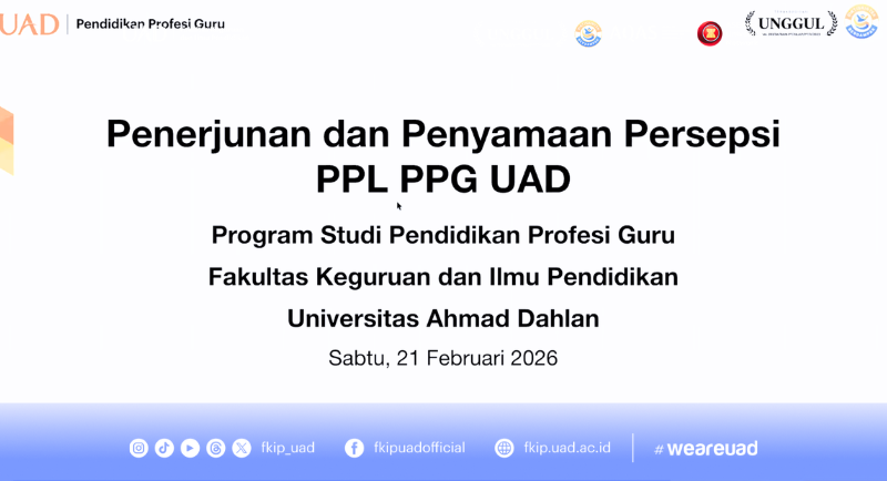 Program Studi Pendidikan Profesi Guru menggelar Penerjunan dan Penyamaan Persepsi PPL I/ Terbimbing secara daring pada Sabtu (21/02) melalui Zoom Meeting. Pada periode pertama, PPG menerjunkan 286 mahasiswa ke 43 sekolah mitra dari berbagai jenjang.